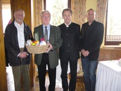 Abt.-Leiter Sigi Zistler, der langjährige Abt.-Leiter Max Schießl und DSV-Skischulleiter Herbert Geiger gratulieren dem Jubilar.