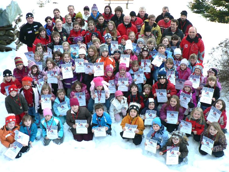 Stolz präsentieren die Skischüler