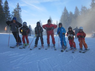 Skischulleiter Herbert Geiger mit den FCC Skilehrern