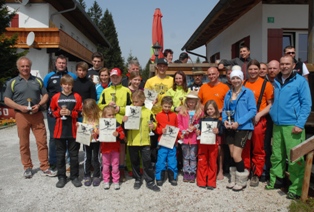 Teilnehmer bei der Siegerehrung, auf der Sonnenterrasse, der Arberalm,