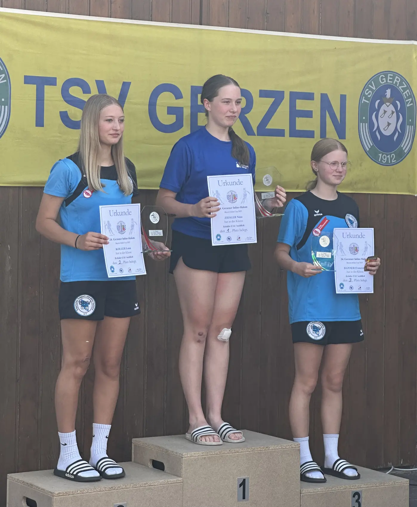 Chammünster (hh). Nach der internationalen Inline-alpin-Gala in Furth im Wald mit den Weltcuprennen im Slalom und Riesentorlauf mitten in der Stadt ging es am Wochenende drauf ruhiger und regional weiter in Gerzen im Vilstal zwischen Vilsbiburg und Frontenhausen. Dabei konnten die drei Starter des FC Chammünster auf der ganzen Linie überzeugen und eroberten zweimal den Sieg in ihrer Altersklasse und einmal Platz zwei.